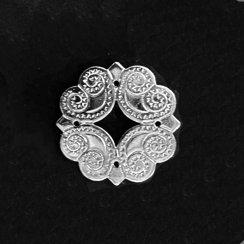 Rosette, rund, Messing vernickelt, gross, 28 x 28 mm