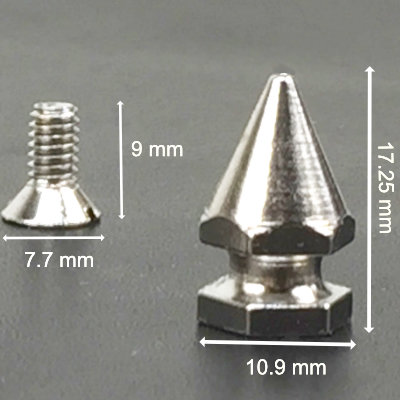 Spike Messing vernickelt 17 x 11 mm, Hexagonal, Schraube Stahl; MADE in USA