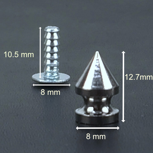 Spike zum Nieten, Messing vernickelt, rund, 13 x 8 mm, mit Stahlniete, für Hundehalsband und Verzierungen