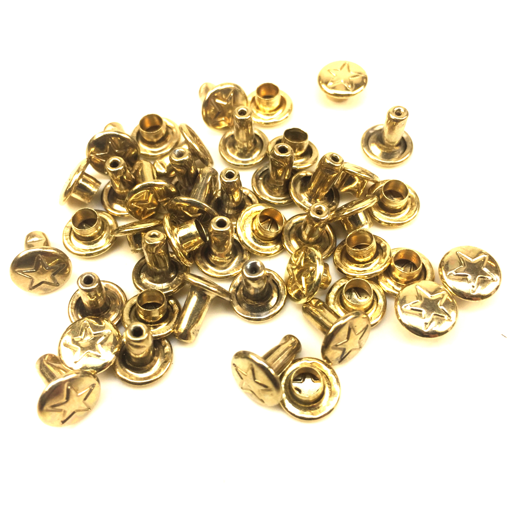 Double Cap Rivets with Star, Brass over Steel Ø 7 x 6.3 mm, 100/Pack